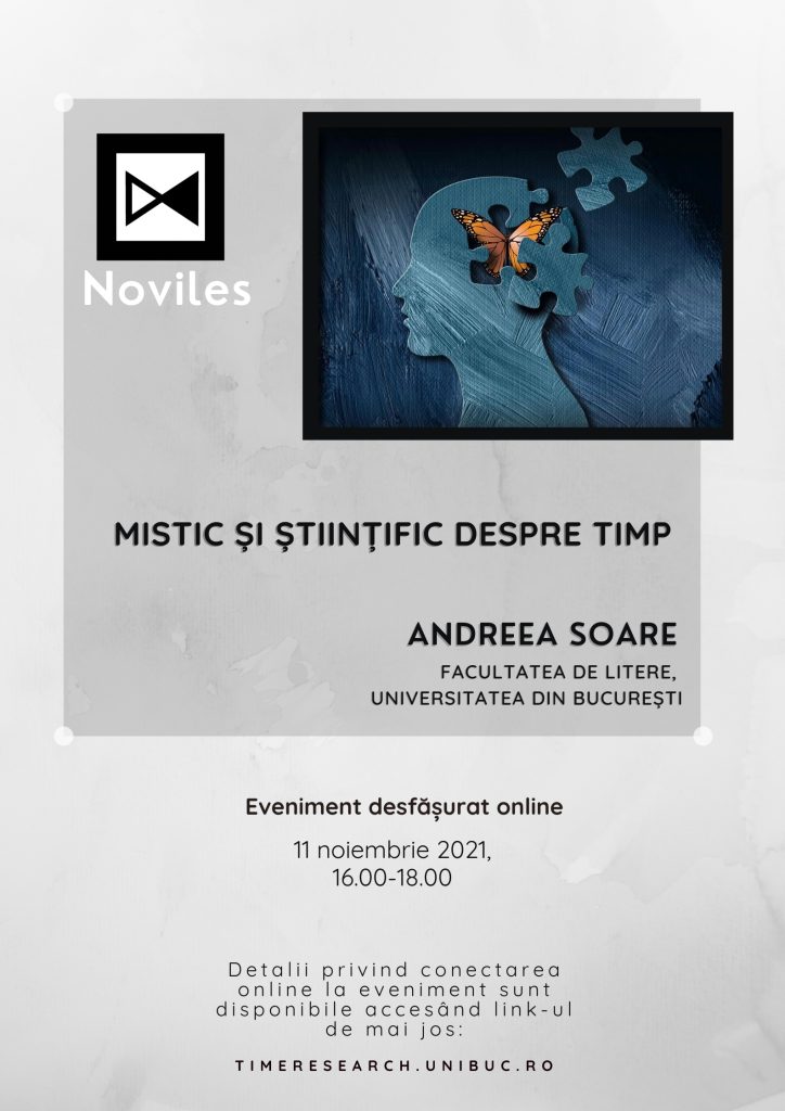 Tema evenimentului | Prezentarea aduce împreună date din lingvistică, neuroștiințe, psihologie, fizică (newtoniană și cuantică), filosofie, în încercarea de a contura posibile răspunsuri la unele dintre întrebările pe care oamenii, în general, și, poate, mai cu seamă filosofii și oamenii de știință și le pun de generații întregi. Cît rămîne din valorile gramaticale ale timpului, cînd ridici ochii din cartea de gramatică și privești oamenii, cerul, viața și conștientizezi „locul” tău în Univers? Toți oamenii percep la fel timpul? Care este rolul creierului și al conștiinței în relația omului cu timpul? De unde a apărut timpul? Ce este timpul? Sînt științele capabile să răspundă la toate întrebările omului (despre timp)? Concluziile s-ar putea să surprindă dincolo de așteptări și să fie cu adevărat schimbătoare de perspectivă. Totul este în ultimă instanță o chestiune de perspectivă. Deține cineva adevărul absolut?!… |